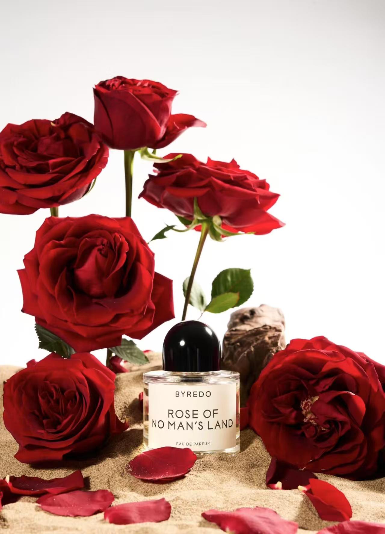 Byredo無人區玫瑰香水,靈感源自第一次世界大戰中在前線救死扶傷的護士,她們被稱為「無人區的玫瑰」。這款香水是對無私、勇敢與堅韌精神的致敬,象征著在逆境中綻放的溫柔與力量。